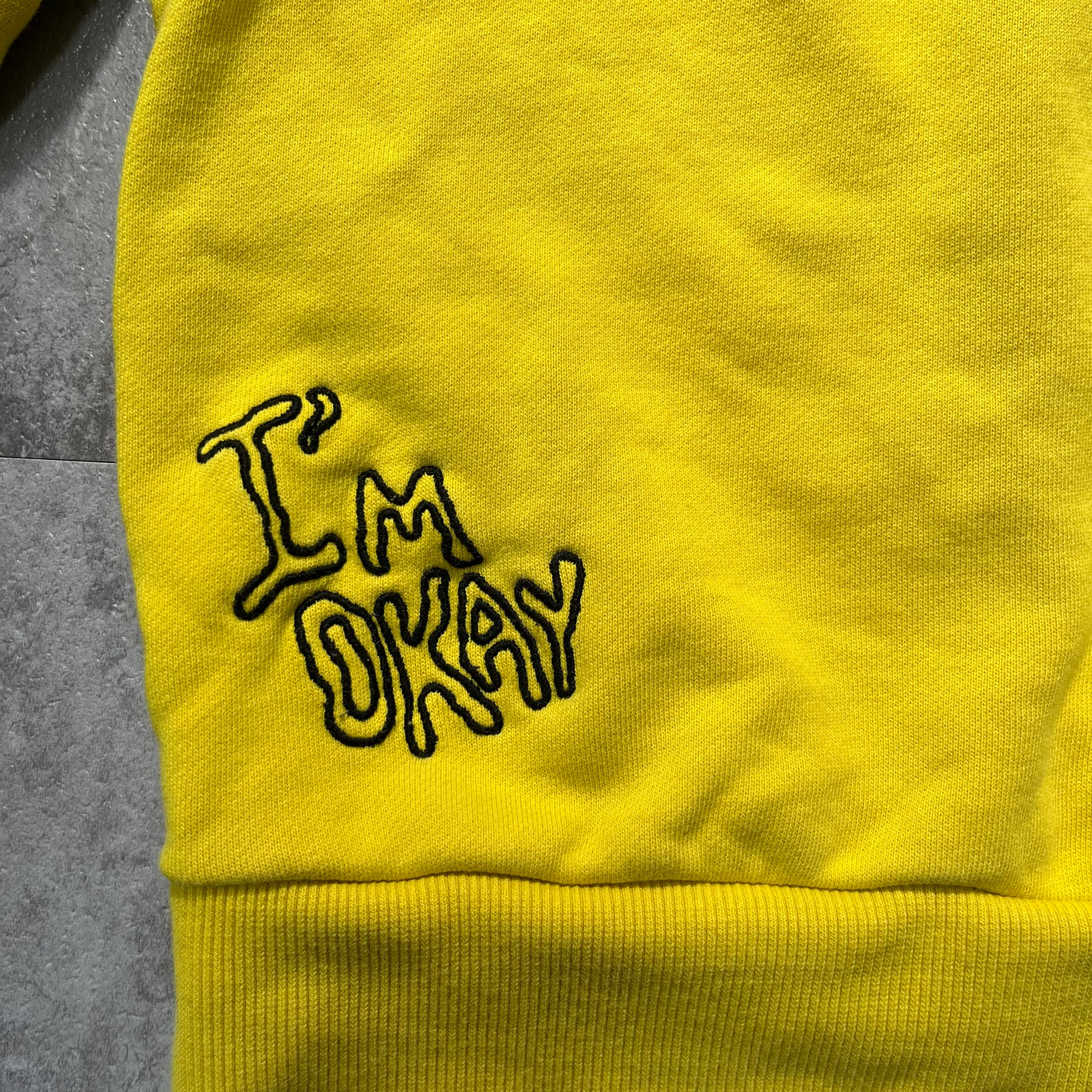 イエローの存在感がまぶしいDIESELのワッペンパーカー。信号待ちの一瞬さえ主役にしてしまうような発色で、遠くからでも視線をさらっていきます。胸の大きなレタードに、袖には遊び心のあるパッチがぎっしり。ストリート感がありつつも、どこかモードな空気をまとっています。