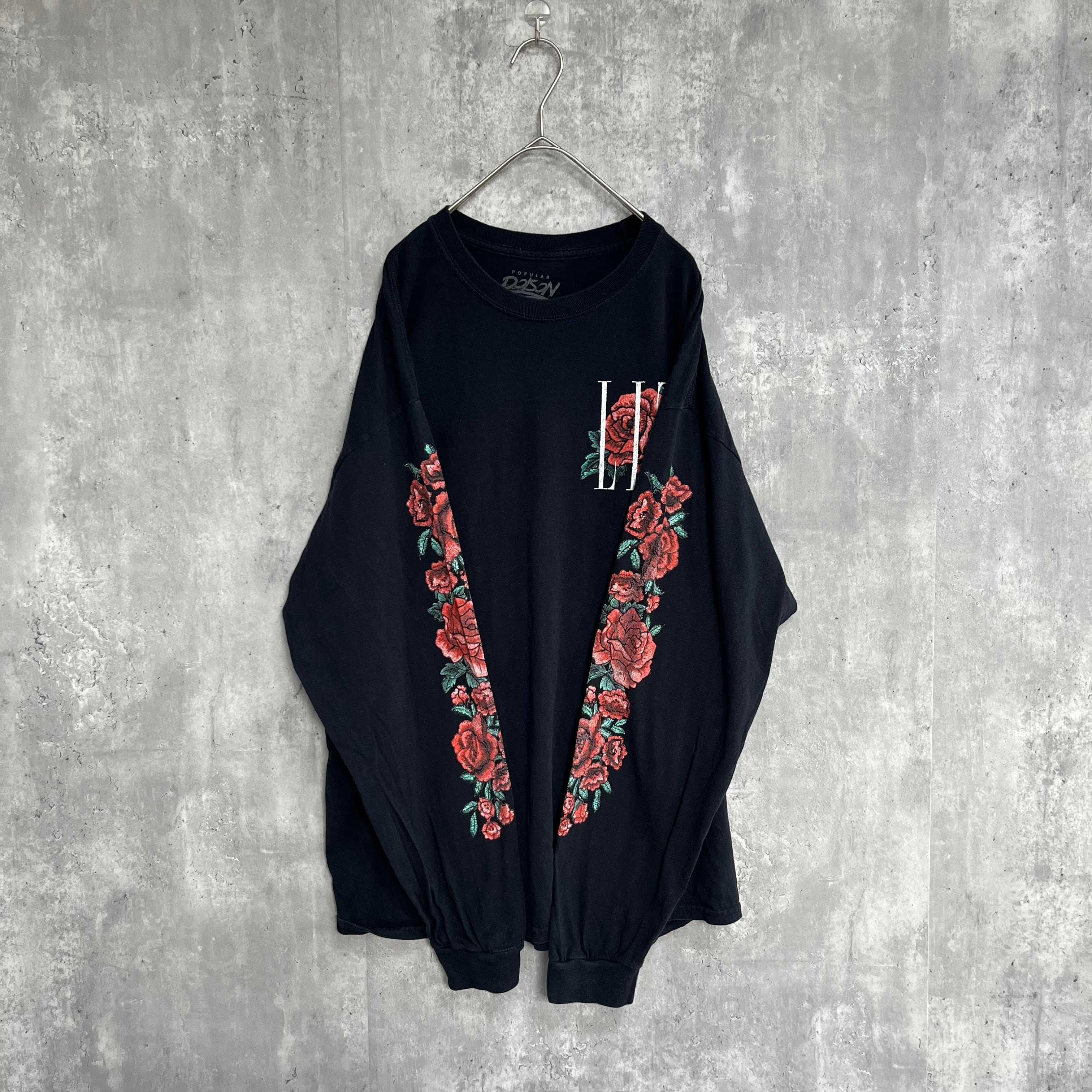 痛みを隠すように咲く薔薇の黒ロンT