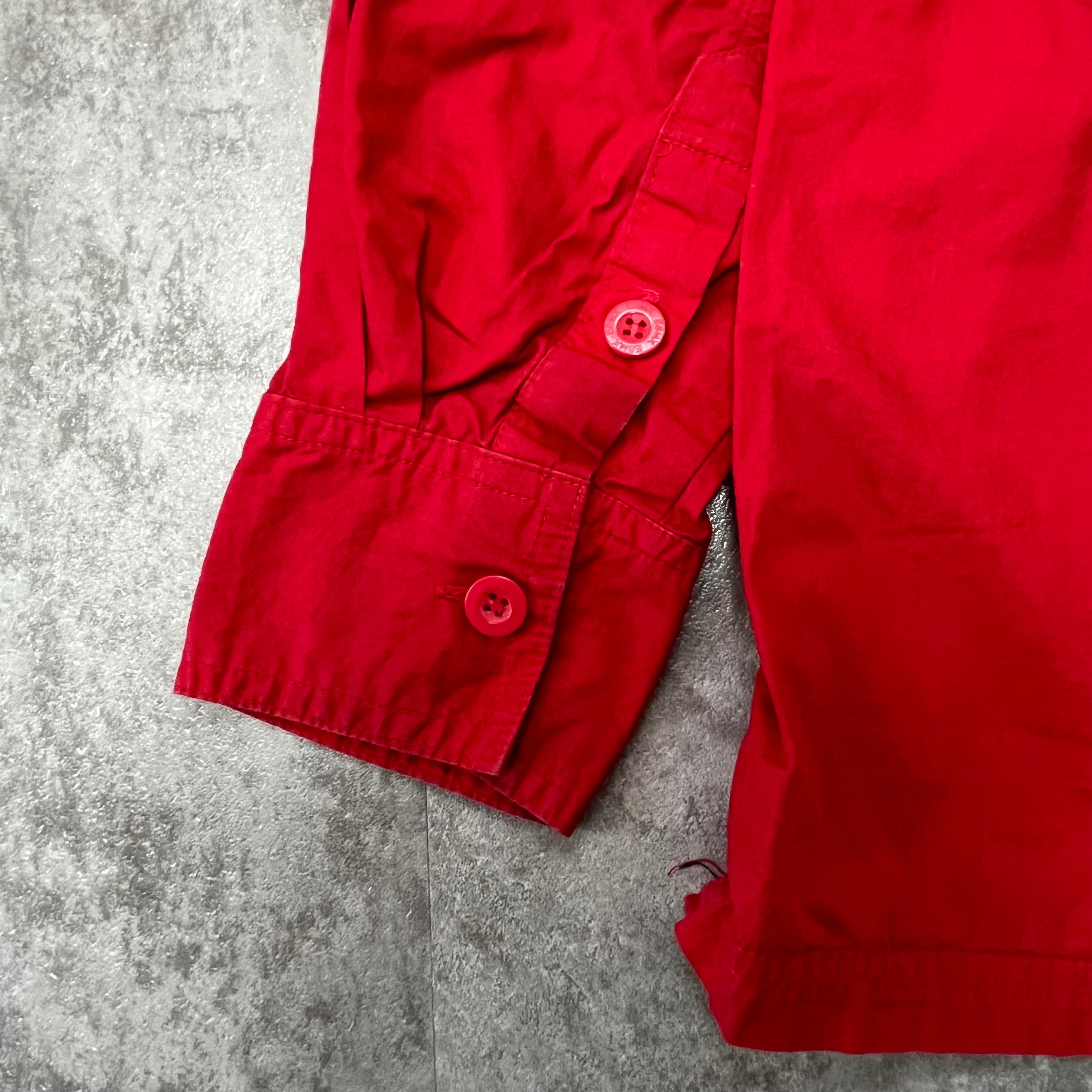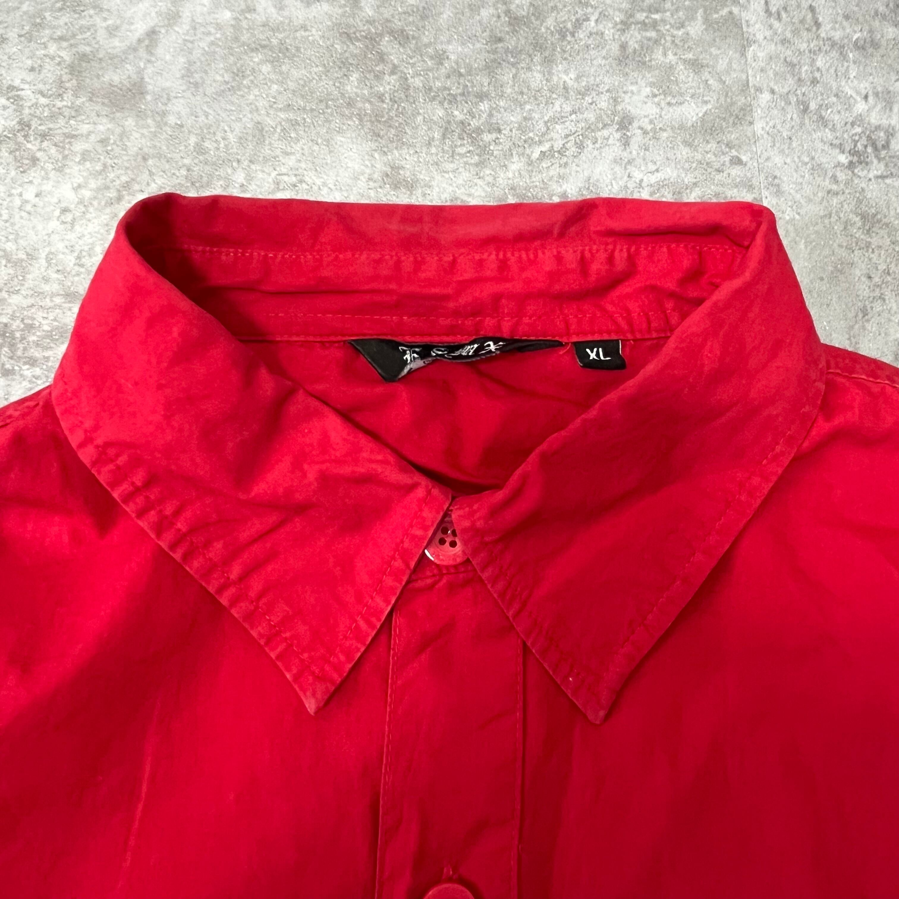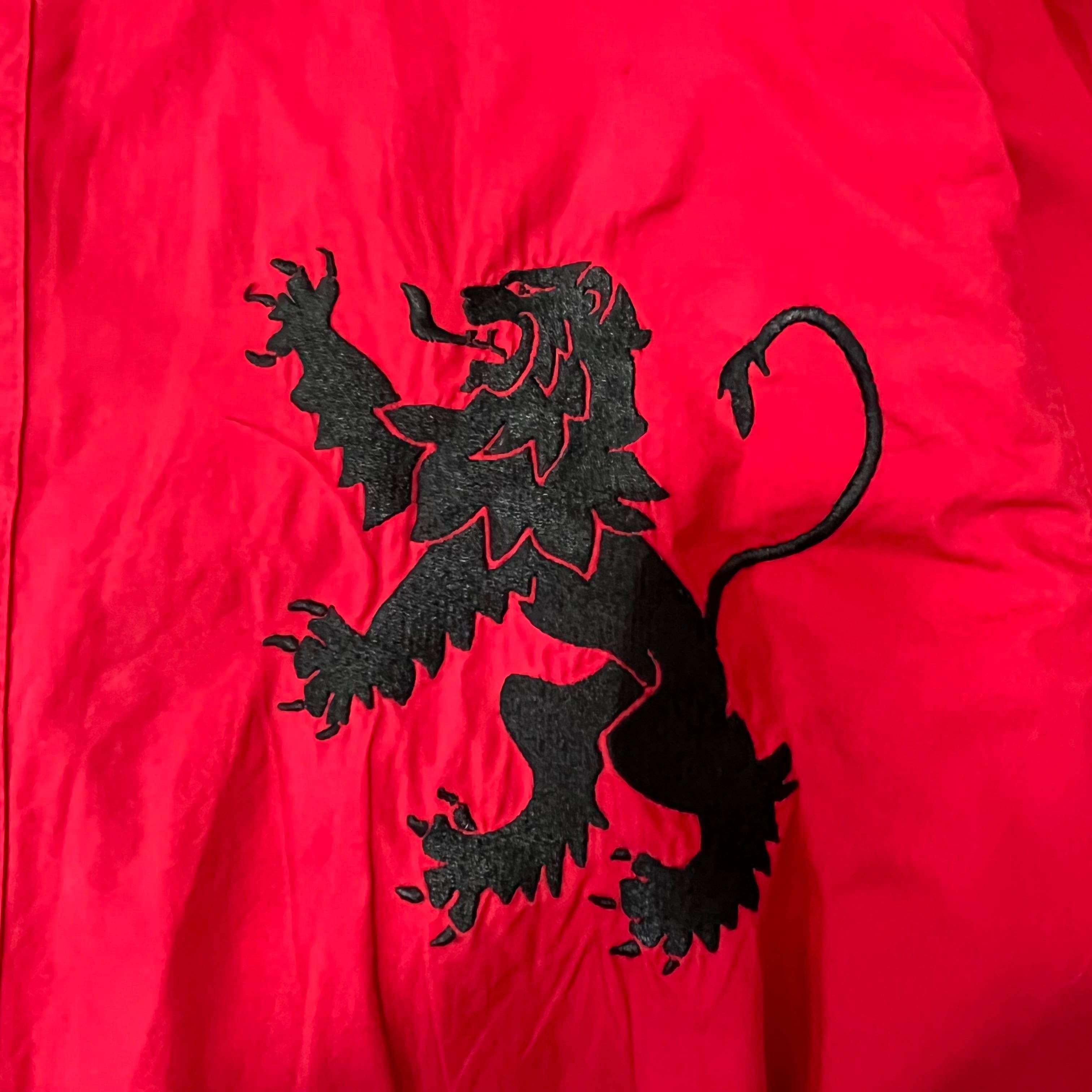 鮮やかなレッドに映える、ブラックライオンの刺繍が主役の一枚。