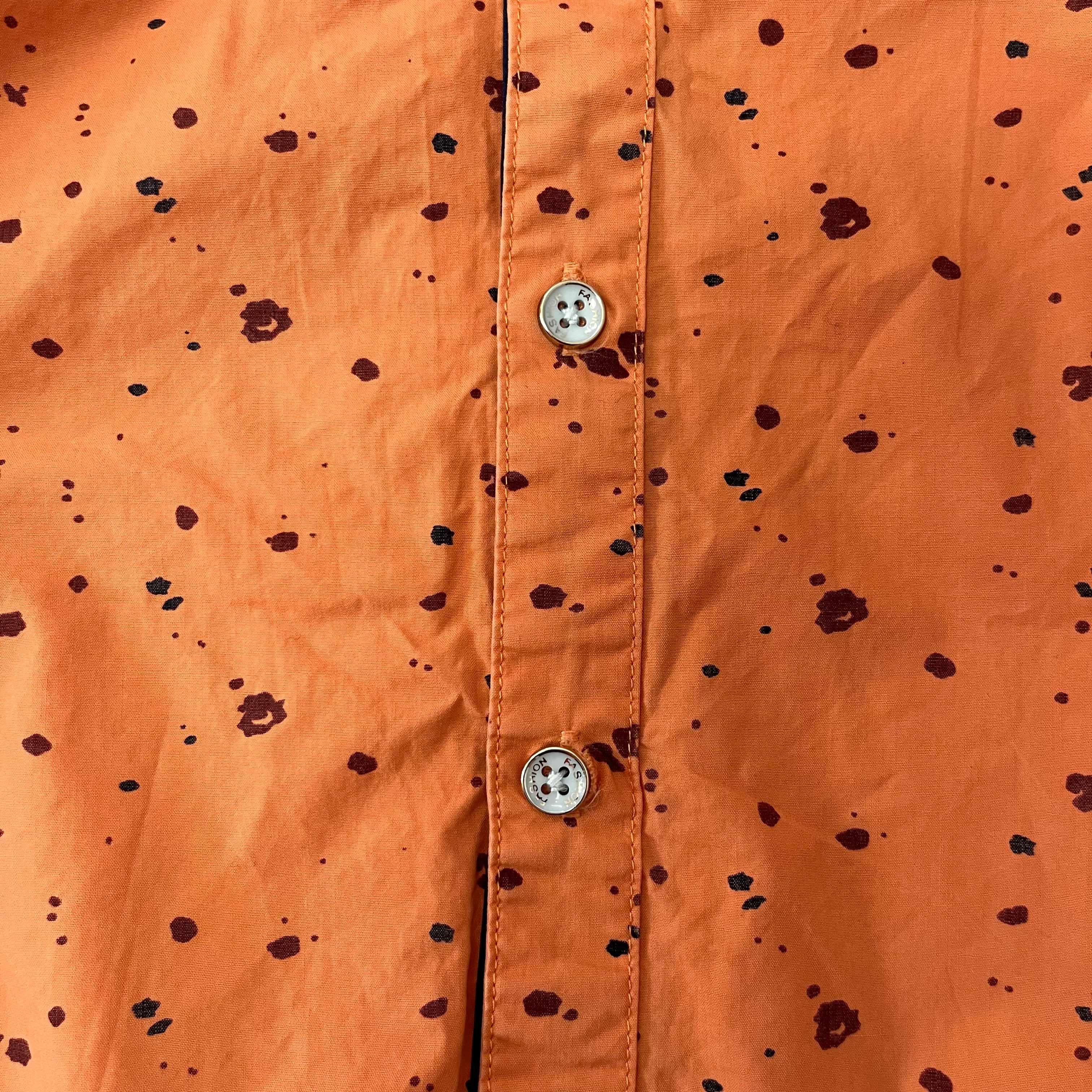 遊び心のある配色デザイン オレンジ長袖シャツ