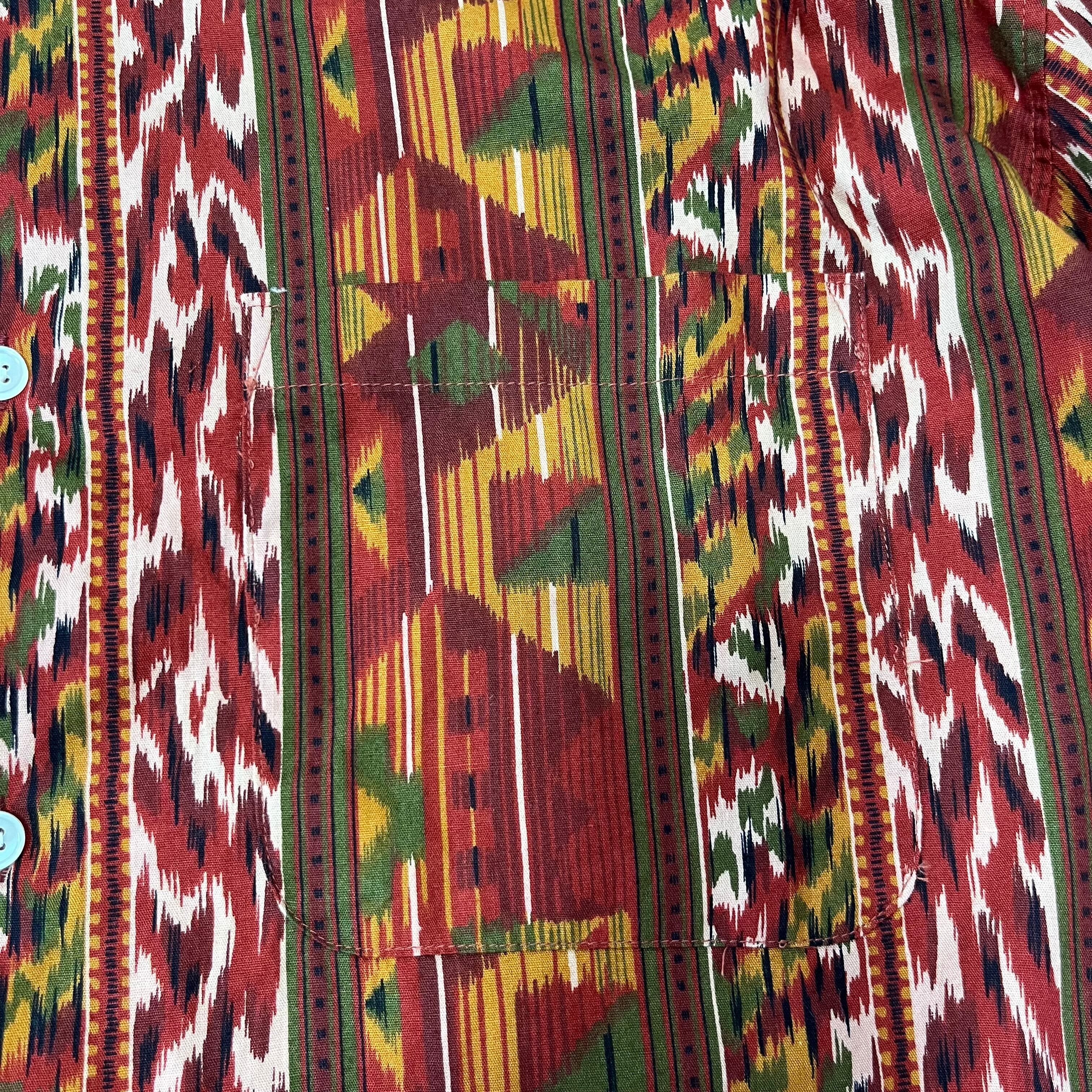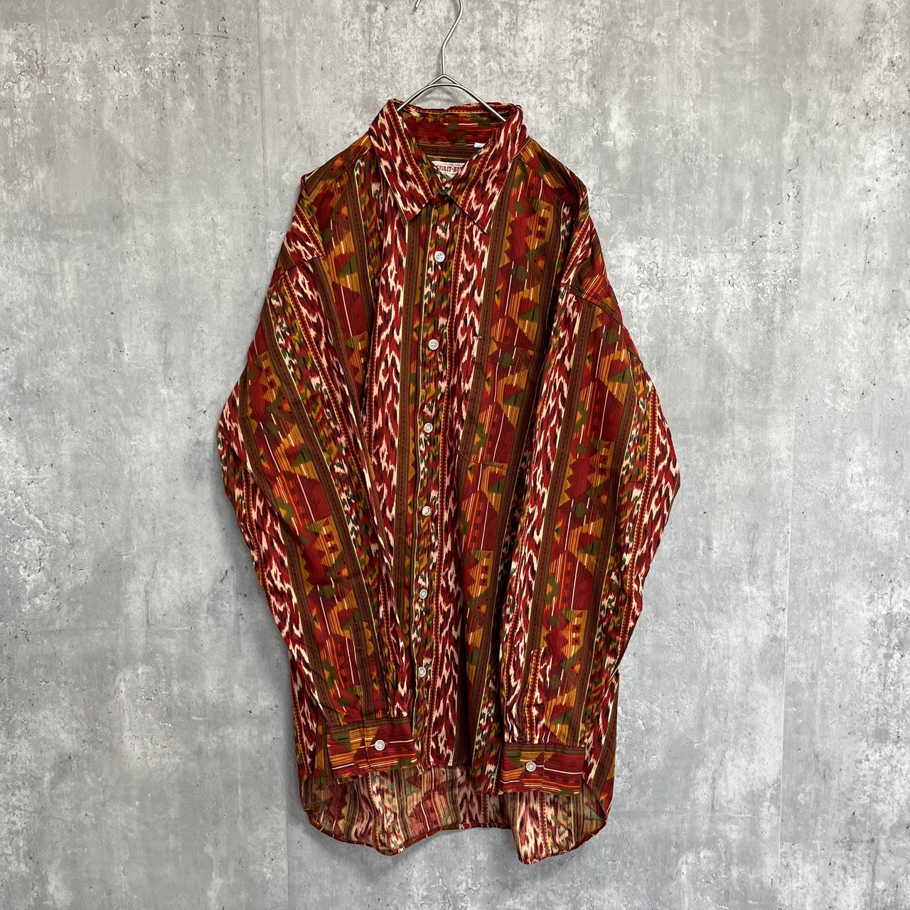 エスニック調の幾何学パターンが魅力のビンテージシャツ