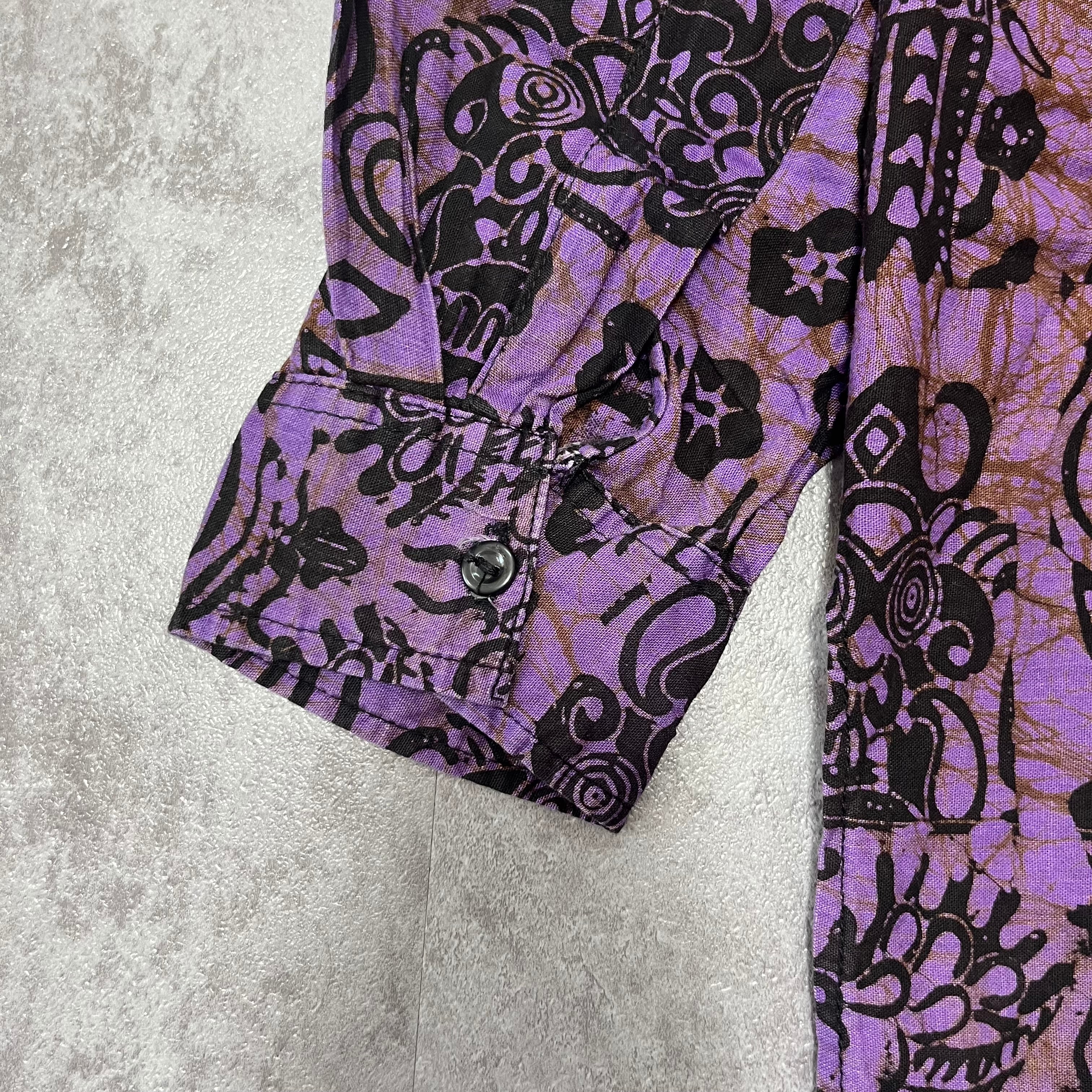 紫と黒のコントラストが際立つエスニック柄シャツ