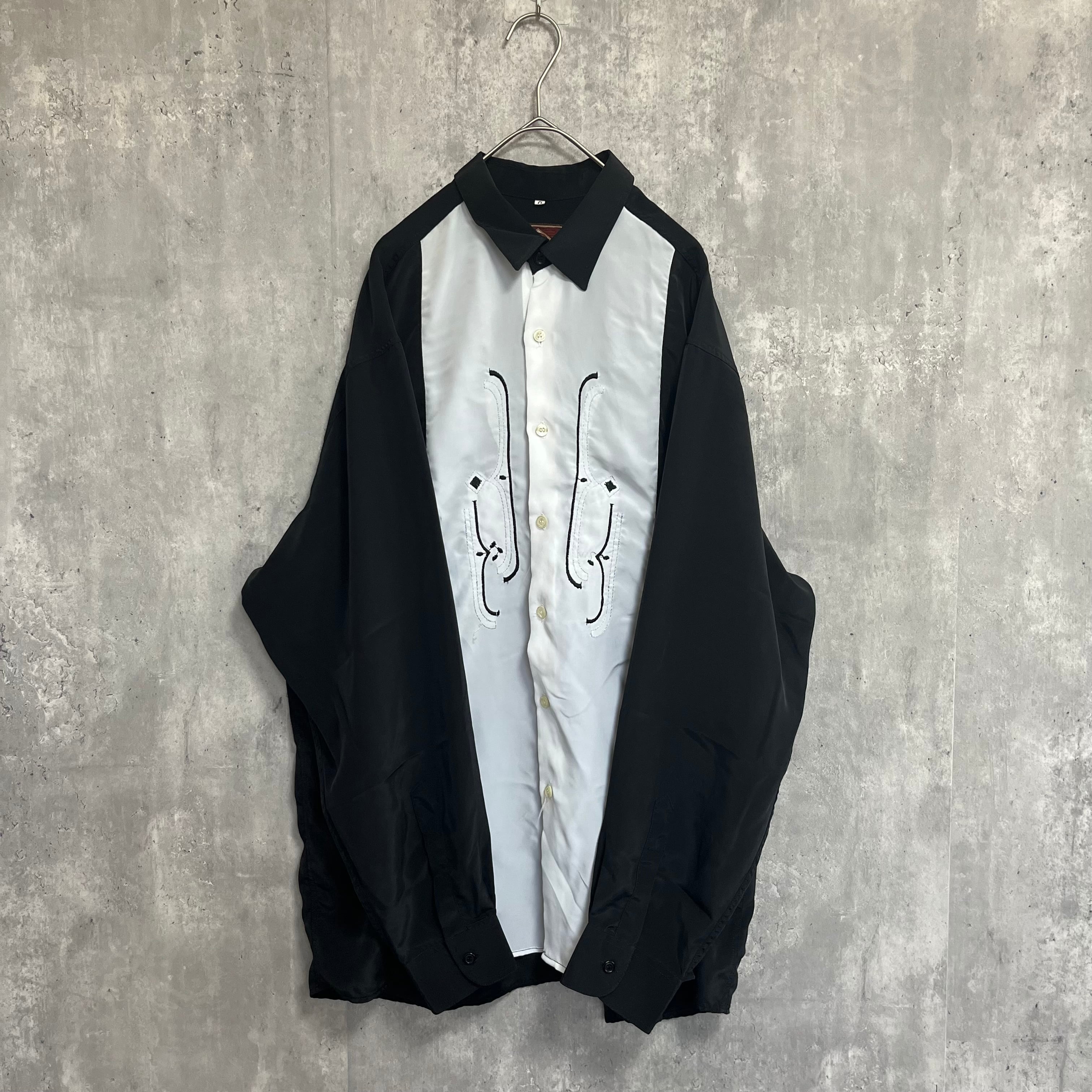 ステージライクな雰囲気を纏うツートンカラードレープシャツ