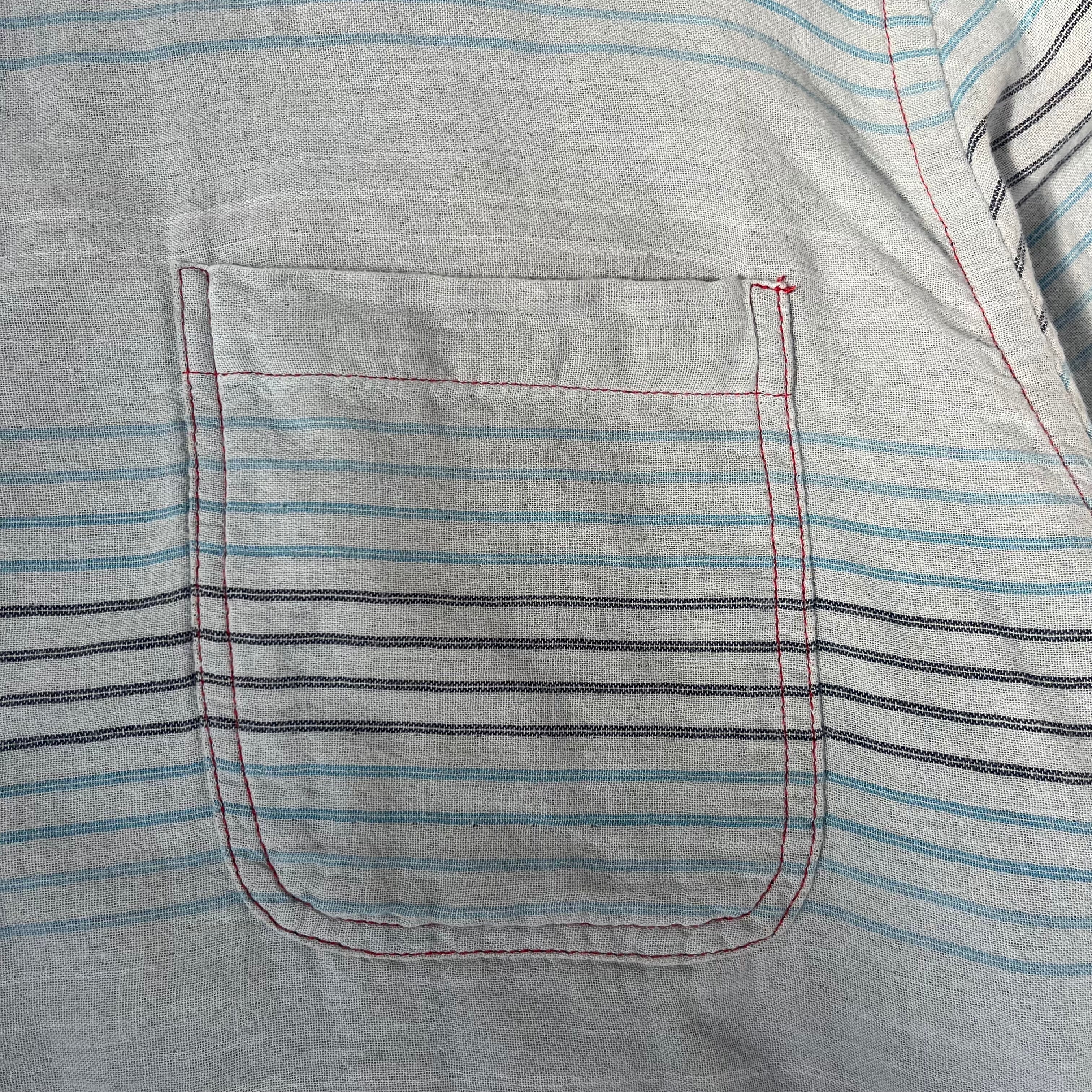 00s Carbon2Cobalt アメリカ古着 ミントグリーン×ボーダー コットンシャツ XL