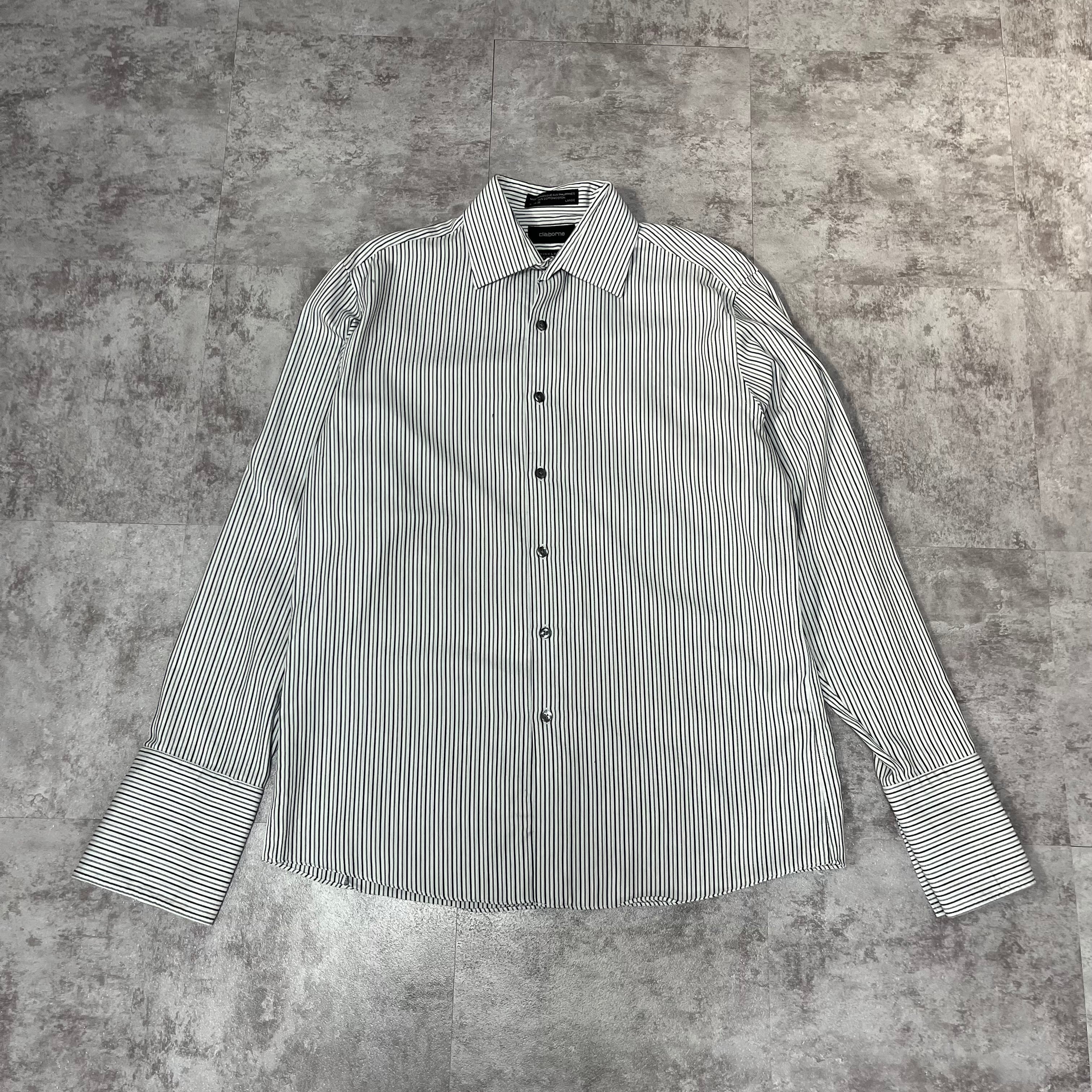 00s Claiborne 白黒ストライプ ドレスシャツ L