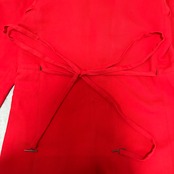 目を引く鮮やかな赤が印象的で、シルエットの美しさを際立たせる一着です。