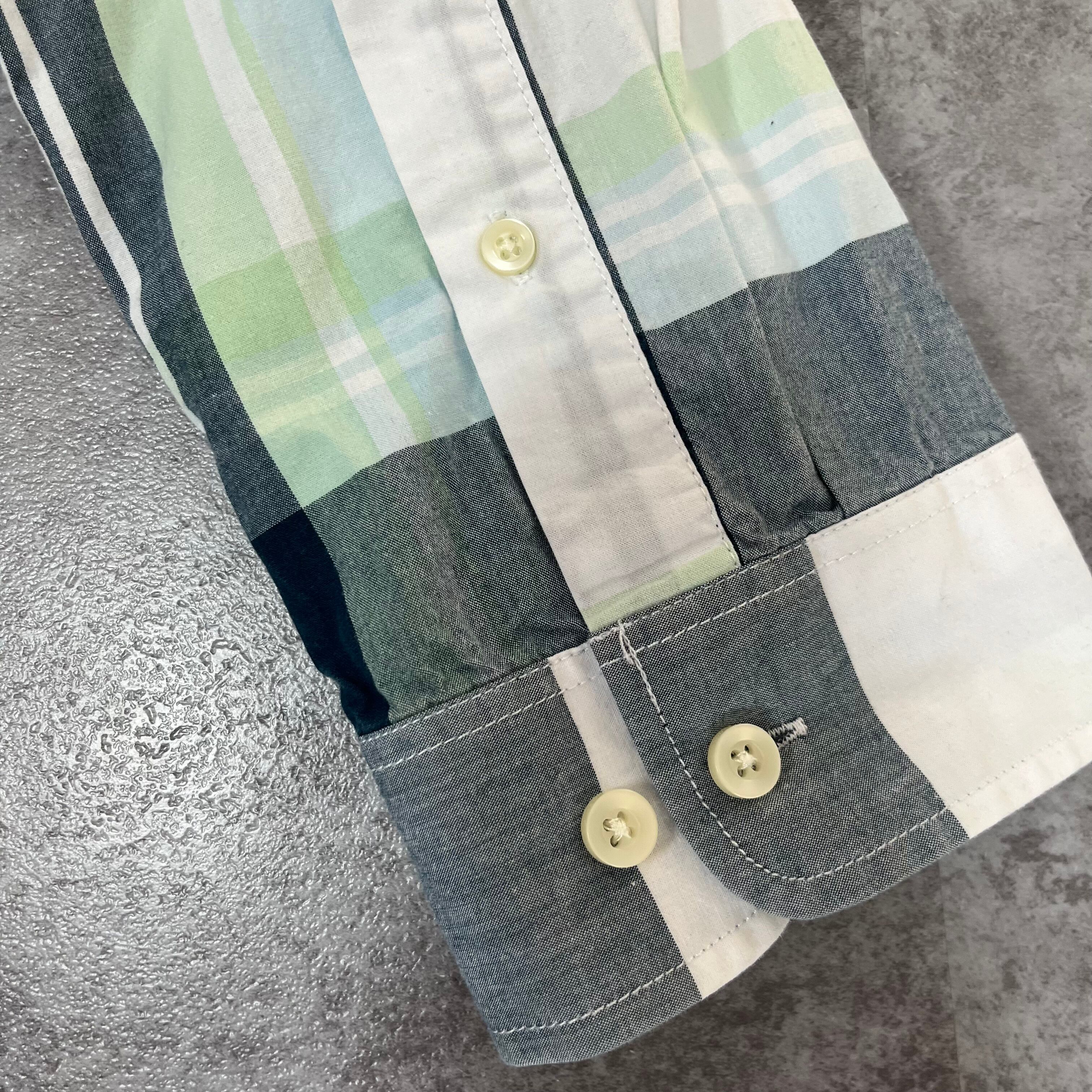 太めのブロックチェックがカジュアルながらも上品な印象を与え、ボタンダウン仕様で程よくトラッドな雰囲気もプラス。