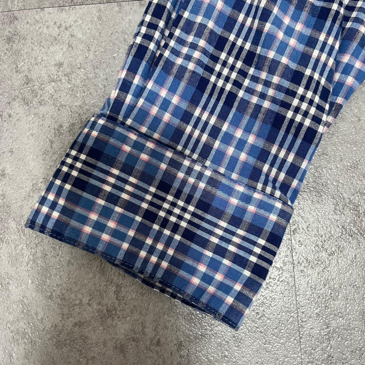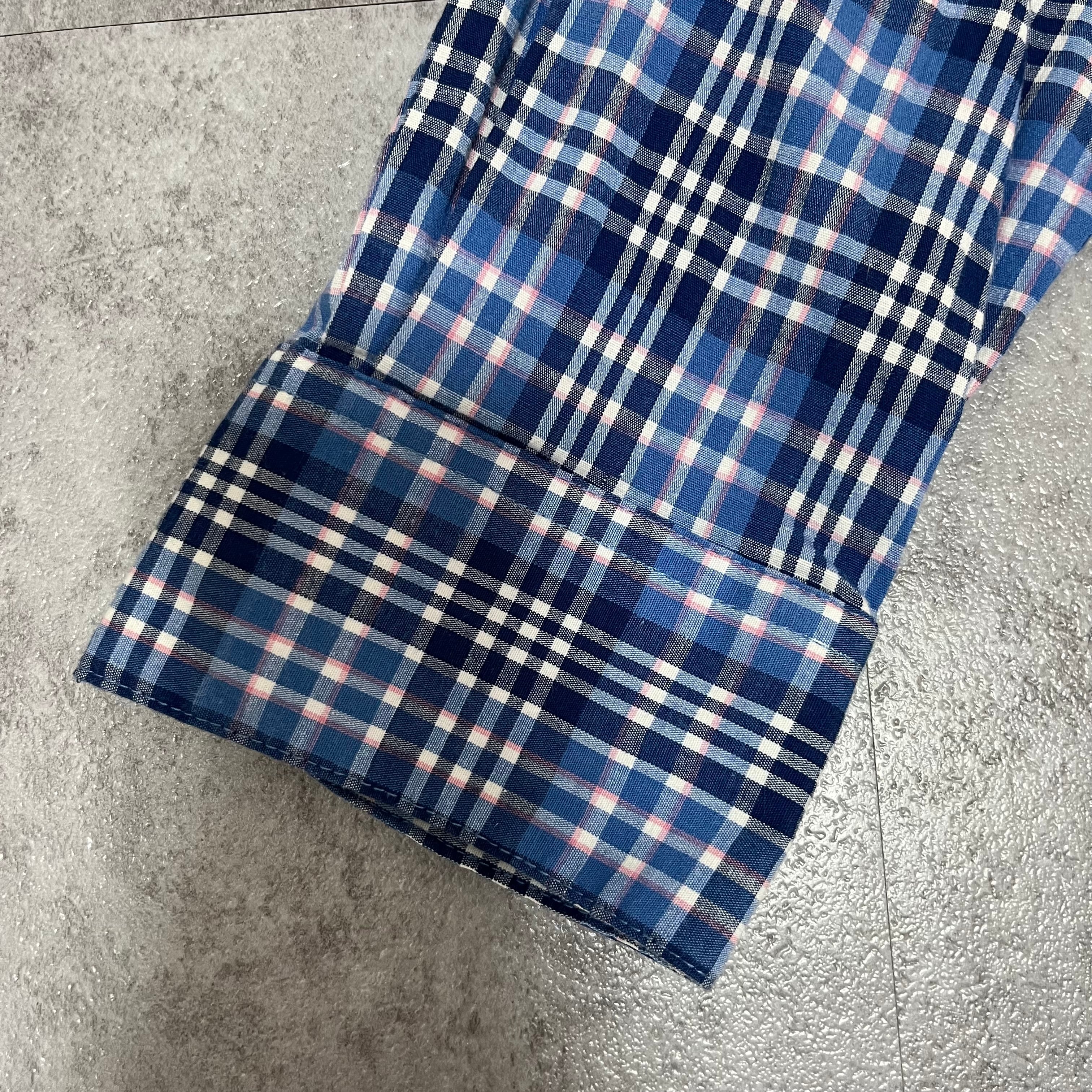 SADDLEBRED ブルー × ピンク チェック STRETCH POPLIN 長袖シャツ